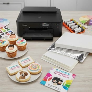 Dé superdeal voor elke bakliefhebber! Van je favoriete foto tot een professioneel logo, print het makkelijk op je gebak. Met dit complete startpakket ben je direct klaar voor de mooiste taarten en andere eetbare creaties.